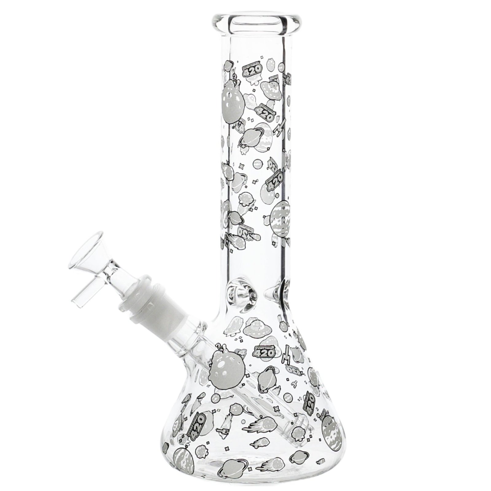 Ready to take your sesh to another dimension? This cosmic 10-inch beaker bong is absolutely lit with its glow-in-the-dark universe design that’ll have you floating among the stars. Charge it up under some light and watch this bad boy glow like the galaxy it represents when you turn the lights down low. The stable beaker base means you can pass this stellar piece around without any space mishaps, while the built-in ice catcher delivers those crisp, cool hits that are out of this world. Whether you’re flying solo or sharing with your astro-crew, this universe bong brings that cosmic gas to every sesh. The diffused downstem filters your smoke smoother than a spacecraft gliding through space, making every rip a first-class ticket to the stars.